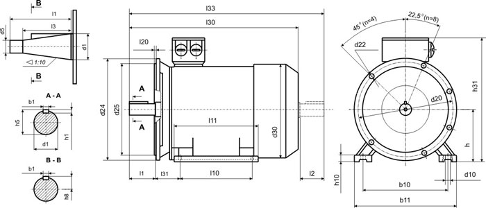 Габаритные, установочные и присоединительные размеры электродвигателей AMTKF 132М6 (АМТКФ 132М6)